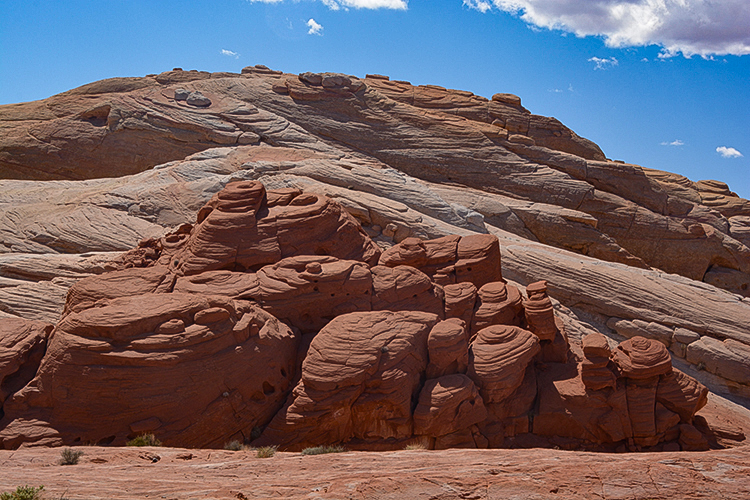 This and the remaining photos were taken at Fire Canyon/Silica Dome. Fire Canyon is named for the deep red sandstone, and Silica Dome for the extreme and unique rock formations.