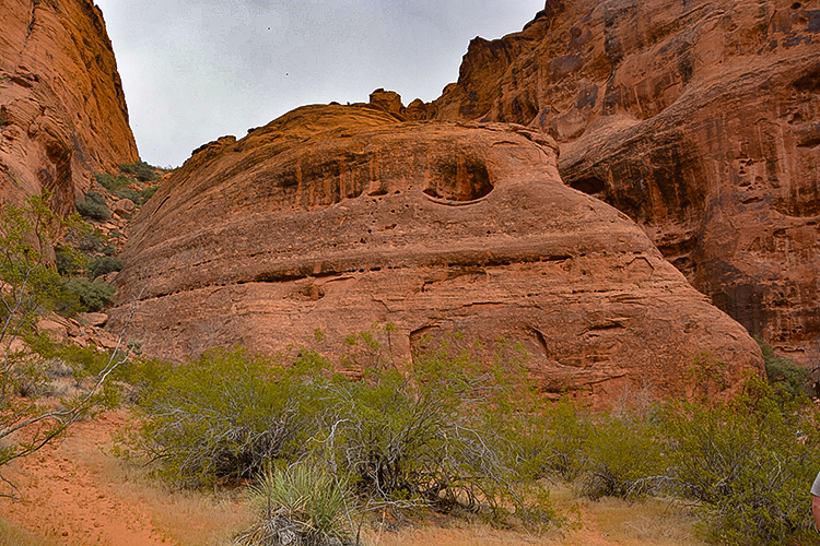 Many of Snow Canyon's hiking trails are through deep soft sand, which is blow off from the rocks. A good pair of over the ankle hiking boots helps keep much of the sand out of your shoes.